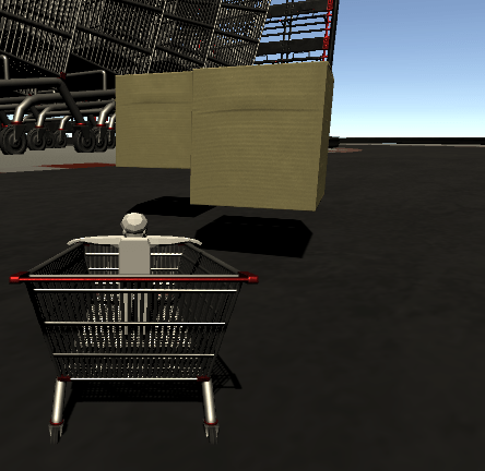On the player development side, Jacob designed a basic driver prefab with an astronaut buddy t-posing in the shopping cart! As of right now, a user can drive the cart using WASD or the left joystick of an xbox controller where pushing it forward allows it to accelerate.